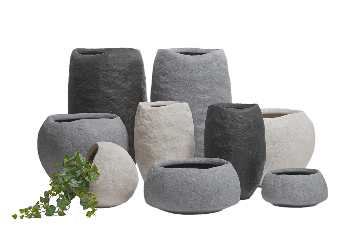 Вазы и кашпо этих серий изготовлены из полистоуна. Polystone® — это инновационный материал, в основе которого натуральный камень и полимерные смолы. Внешние свойства полистоуна позволяют придавать изделиям, изготовленным из него, особенную красоту — естественность природного камня, его формы и фактуру.